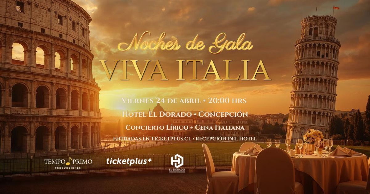 MúsicaNoches de Gala – Viva Italia24/04/202620:00 horasSalón Atenas hotel y centro de convenciones el dorado